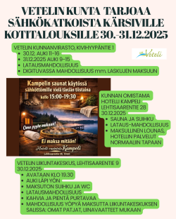 VETELIN KUNTA TARJOAA SÄHKÖKATKOISTA KÄRSIVILLE KOTITALOUKSILLE 30.-31.12.2025: